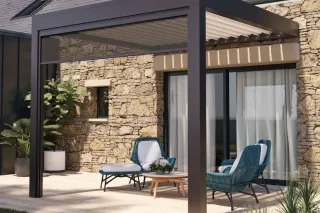 - Affrontez les intempéries en hiver grâce à des options comme des stores latéraux ou des fermetures vitrées qui transforment la pergola en un espace semi-clos.