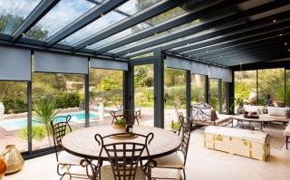 compromis. Il existe également d’autres options pour profiter de cet espace toute l’année et sans compromis : des coulissants en triple vitrage pour se protéger du froid, des panneaux de toiture pour un haut pouvoir isolant ou encore l’option volets roulants pour occulter la pièce et augmenter l’isolation thermique.