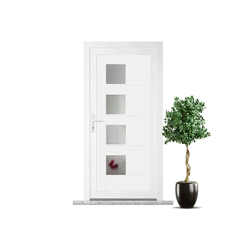 Pour le côté isolation le choix s'est porté sur une porte pvc avec un vitrage sécurit et la possibilité de faire de la bi coloration.